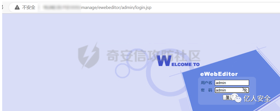 然后通过信息收集,ewebeditor大部分都是后台洞,通过弱口令上传GETSHELL