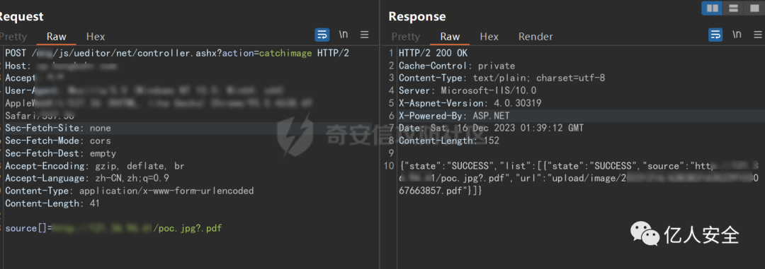 source参数抓取本机ueditor图片目录,这里测试了本机127.0.0.1的端口失败了,但能读取本机域名下图片
