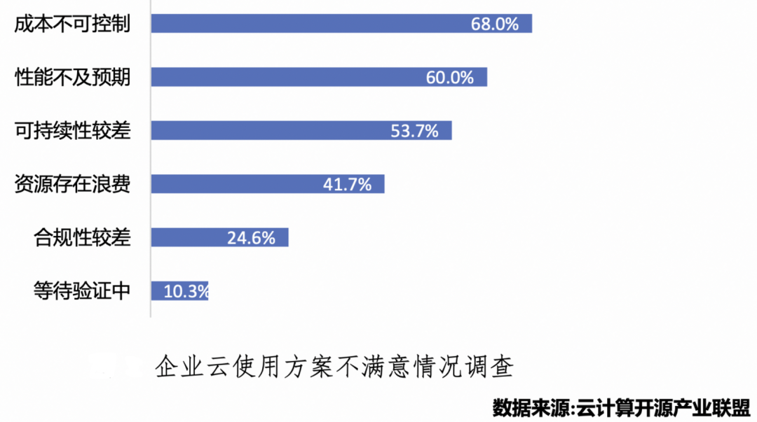企业云支出浪费现象普遍、云上成本管理面临挑战。当云计算为企业 IT 基础设施带来敏捷性和效率提升的同时,企业用云资源配置不合理或配置过渡的现象普遍存在。根据Flexera 2022年调查数据,企业用云费用平均被浪费了32%。《中国云使用优化报告(2021)》数据显示,企业上云后云成本不可控制是企业用云面临的最大挑战,且九成以上用云企业有云成本优化的需求。