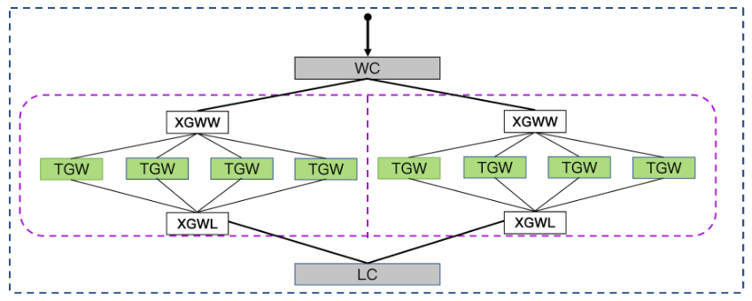 TGW主要有两大产品:一个是弹性EIP,比如购买一台虚拟机CVM或是一个NAT实例后,通过EIP连通外网;另一个是四层CLB,一般分为内网CLB和外网CLB,内网CLB是在vpc内创建一个CLB实例,把多个CVM服务挂在了内网CLB上,为后端RS提供负载均衡的能力;外网CLB面对的是公网侧负载均衡的需求。当在内部部署CLB集群时,可分为IPV4或者IPV6两大类,根据物理网络类型又细分为BGP和三网两类。三网指这些IP地址是静态的,不像BGP一样能够在多个运营商之间同时进行广播。