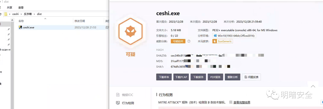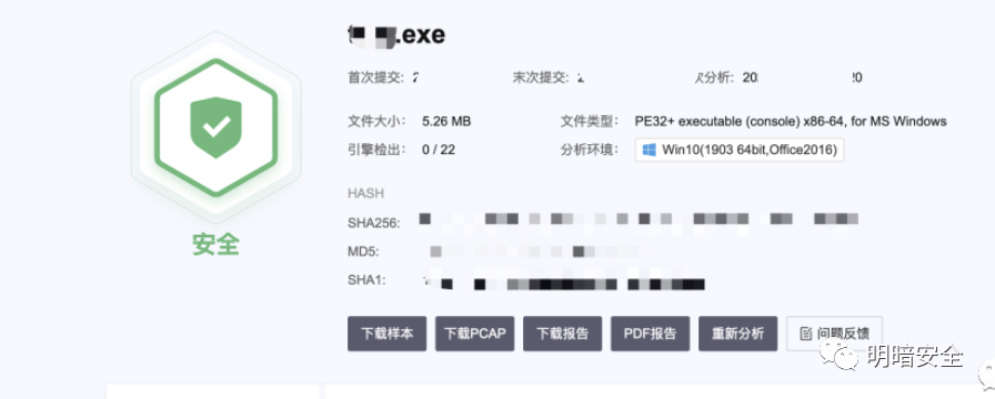 使用pyinstaller打包为exe,并丢到反沙箱上。