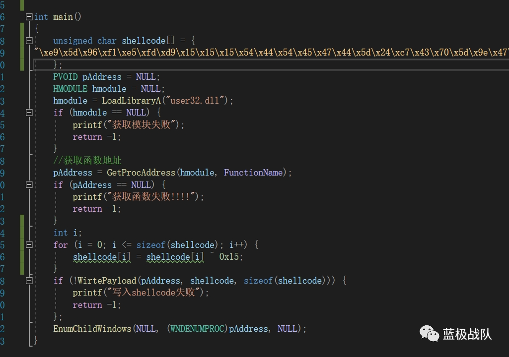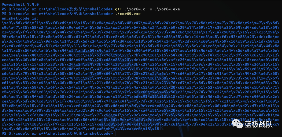 这里可以使用加解密shellcode,也可以将shellcode伪装成图片或其他文件然后远程加载,思路多多,这里就不一一演示了,来个最简单的异或处理演示一波。