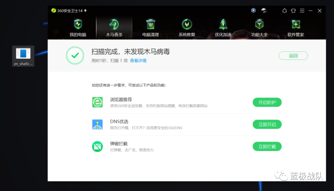 直接运行成功执行了我们的shellcode然后上线,360主动防御也没任何反应。