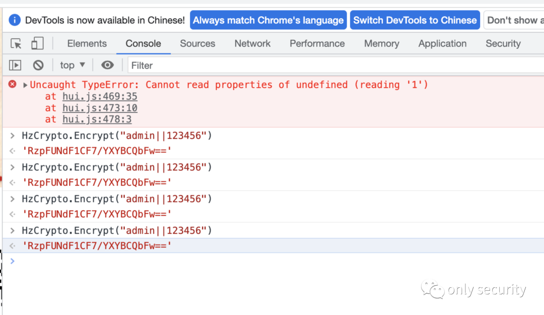 这里有个坑点: 这里需要在调试的chrome浏览器中拦截住以后再刷新一次才可以得到密文,否则执行js代码无返回