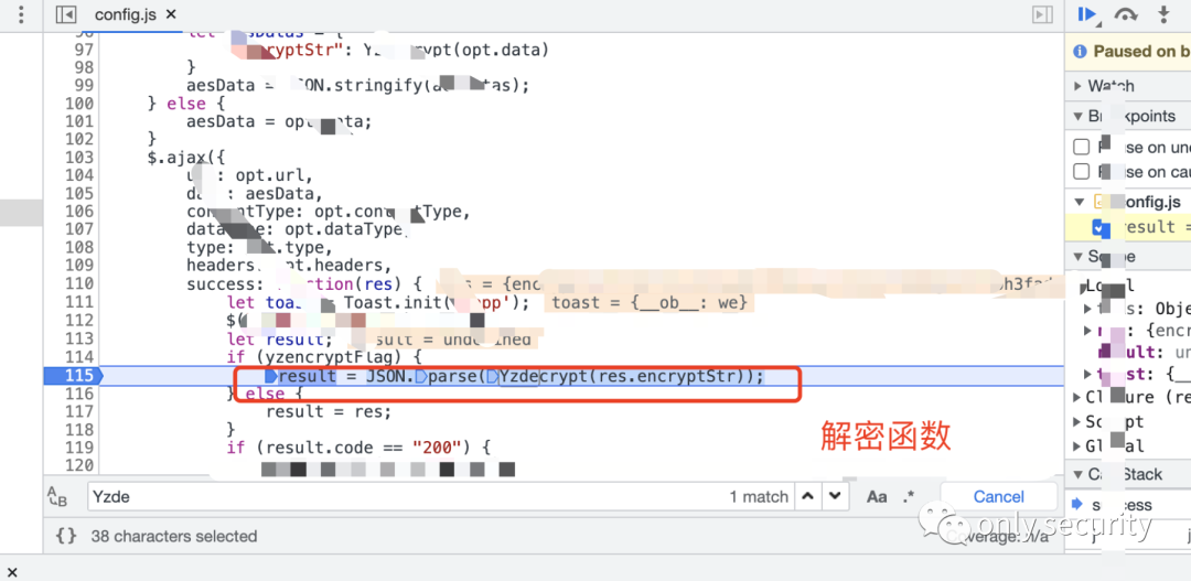 expression"Yzdecrypt(res.encryptStr)",callFrameId:frameid