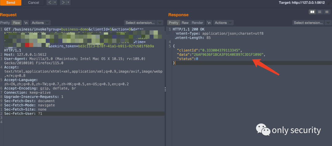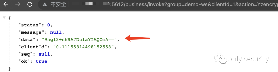 http://x.x.x.x:5612/business/invoke?group=demo-ws&clientId=1&action=Yzencrypt&data=18812341233&sekiro_token=5392f1be-0c15-480d-8b68-804d0e9bd0f2