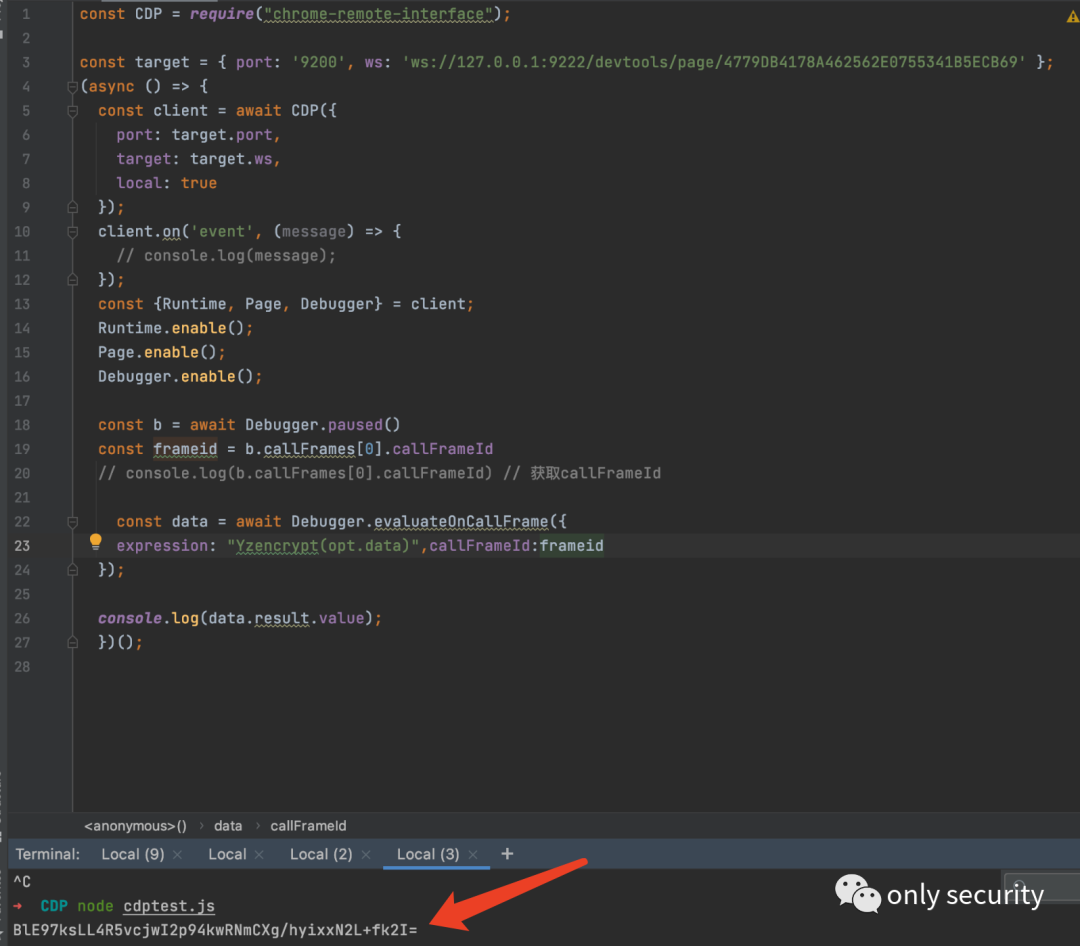 const data_decry = await Debugger.evaluateOnCallFrame({