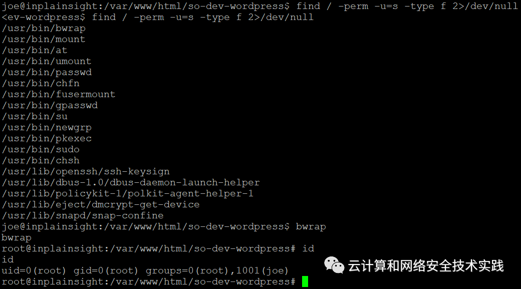 获取到bwrap,执行bwrap,获取到新的shell,id确认是root,
