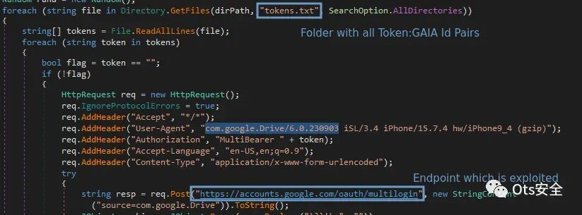 CloudSEK 对漏洞进行了逆向工程,发现它依赖于一个名为“MultiLogin”的未记录的 Google OAuth 端点。