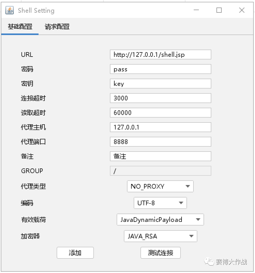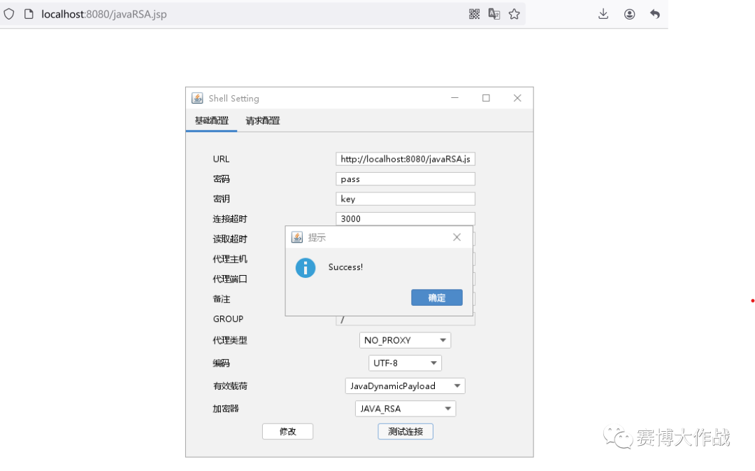 这时候,编译运行后,生成shell界面和连接设置shell界面已经有JAVA_RSA加密器可选了: