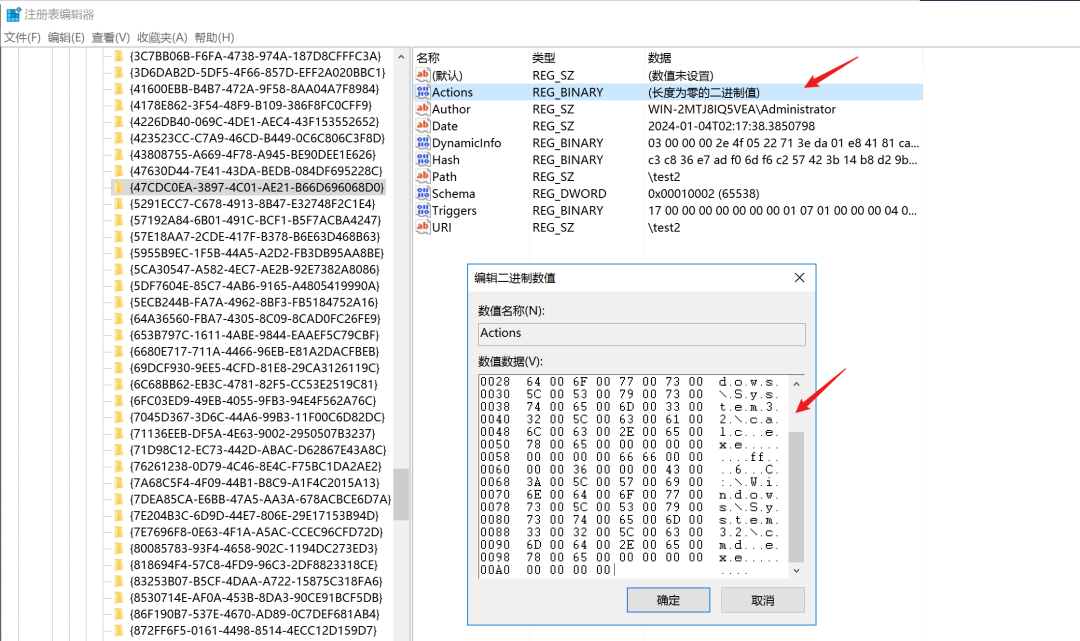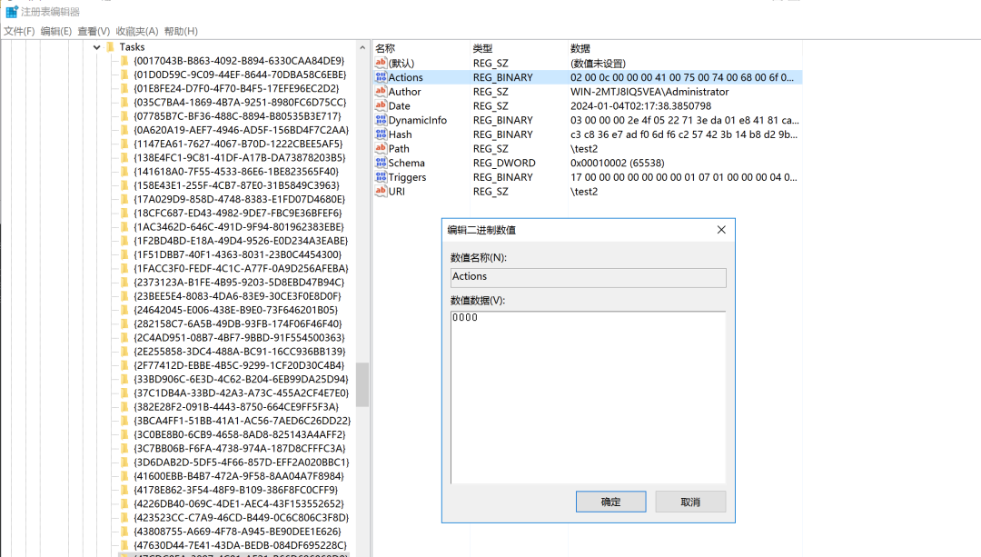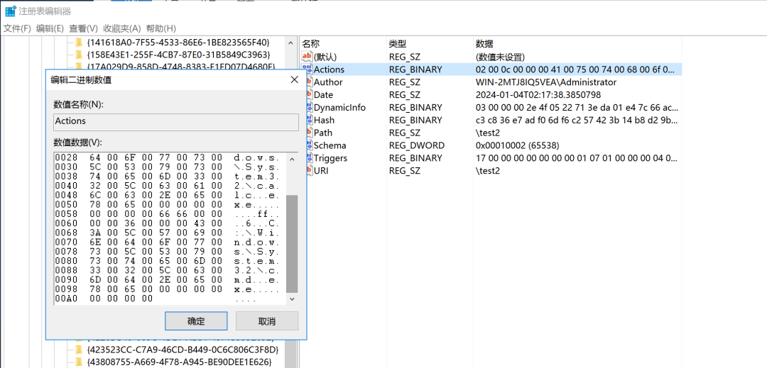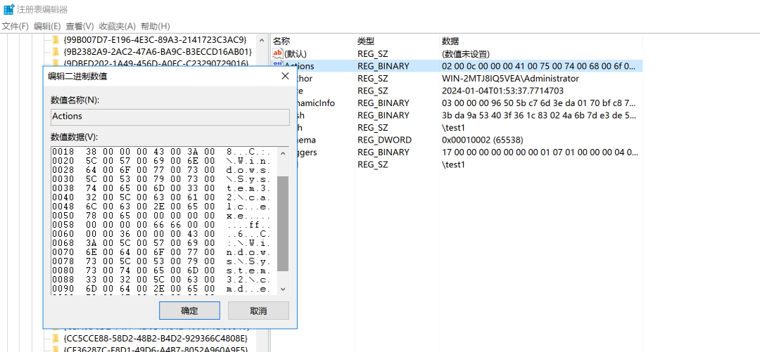 但是稍加观察,也可以发现,每个操作的程序路径结尾有九个00 ,由于我们知道计划任务中操作的实际内容,那直接尝试删除到九个00 处