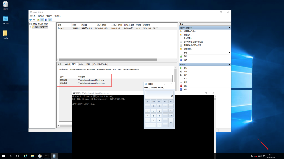 通过注册表对计划任务的修改开始生效,只执行了计算器