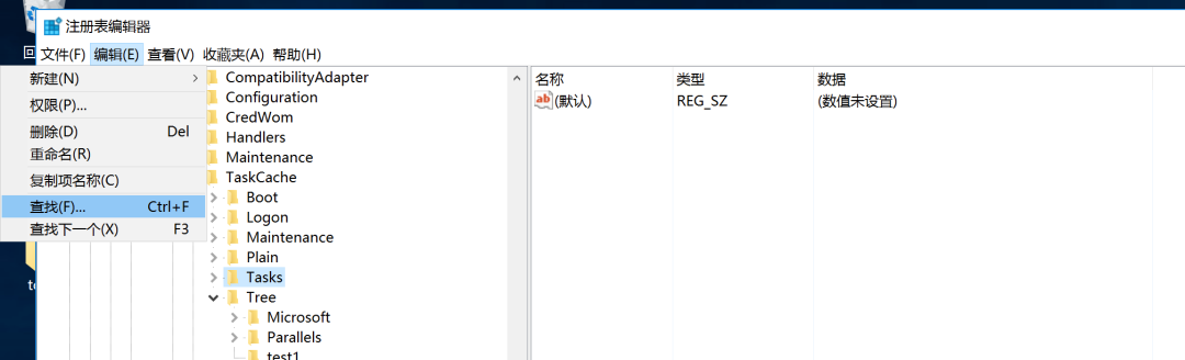 修改计划任务注册表需要 SYSTEM 权限,通过 SysinternalsSuite 套件中的 psexec64.exe 以 SYSTEM 权限启动注册表编辑器,就可以编辑了