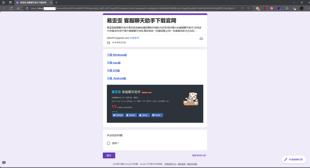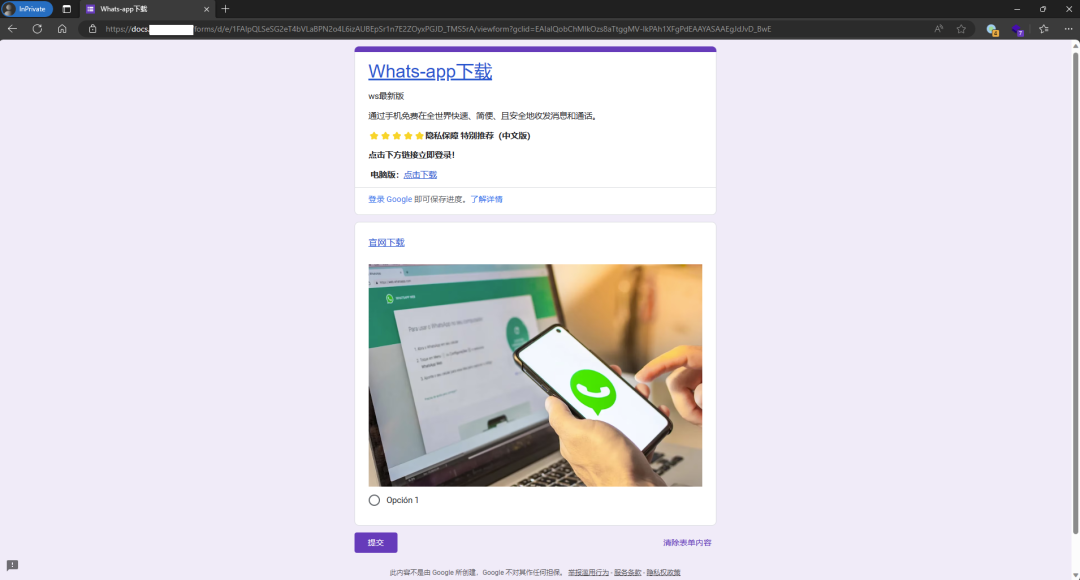 同时这些钓鱼资产中除了攻击者自建网站外,攻击者还使用Google Docs做钓鱼页面,相比于自建网站,使用Google的域名可以绕过电子邮件中静态链接扫描程序,并且难以溯源。