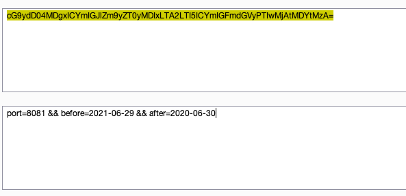 GET /api/v1/search/[email protected]&key=a30c1dd7ef01722c05f5&qbase64=cG9ydD04MDgxICYmIGJlZm9yZT0yMDIxLTA2LTI5ICYmIGFmdGVyPTIwMjAtMDYtMzA=&size=10000&fields=ip,host,title HTTP/2Host: fofa.soAccept-Encoding: gzip, deflateUser-Agent: Go-http-client/2.0Connection: close