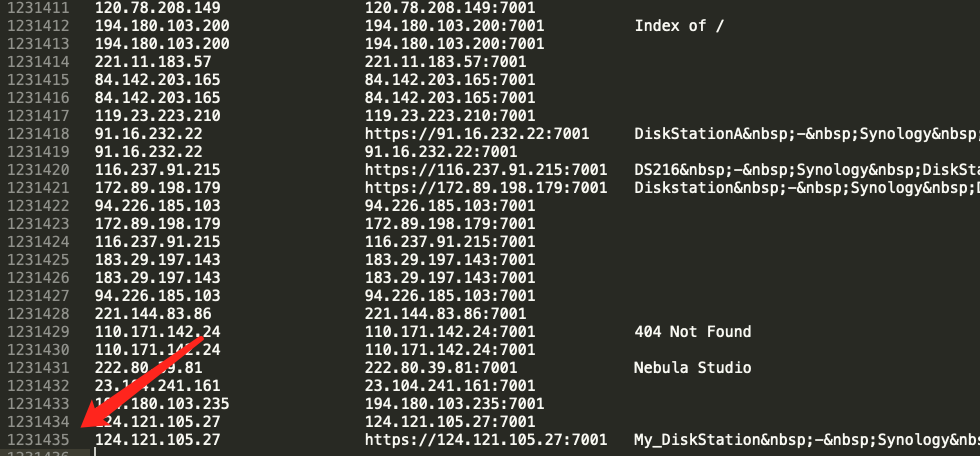 ./goon_amd64_mac -mode fofascan -key port="7001" -num=-1得到了123W条数据