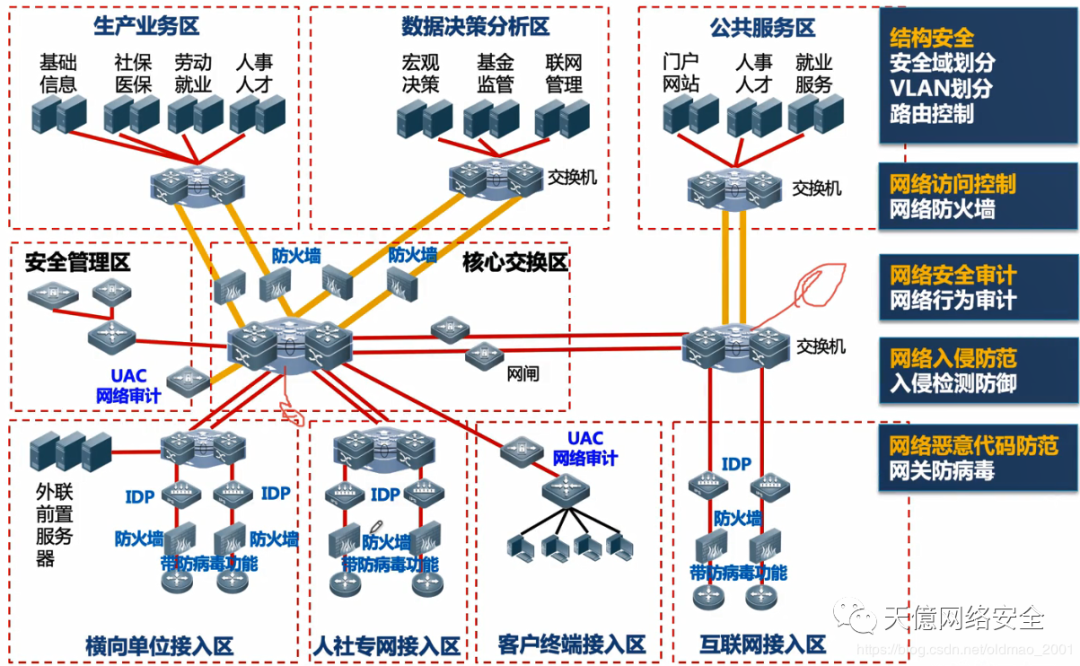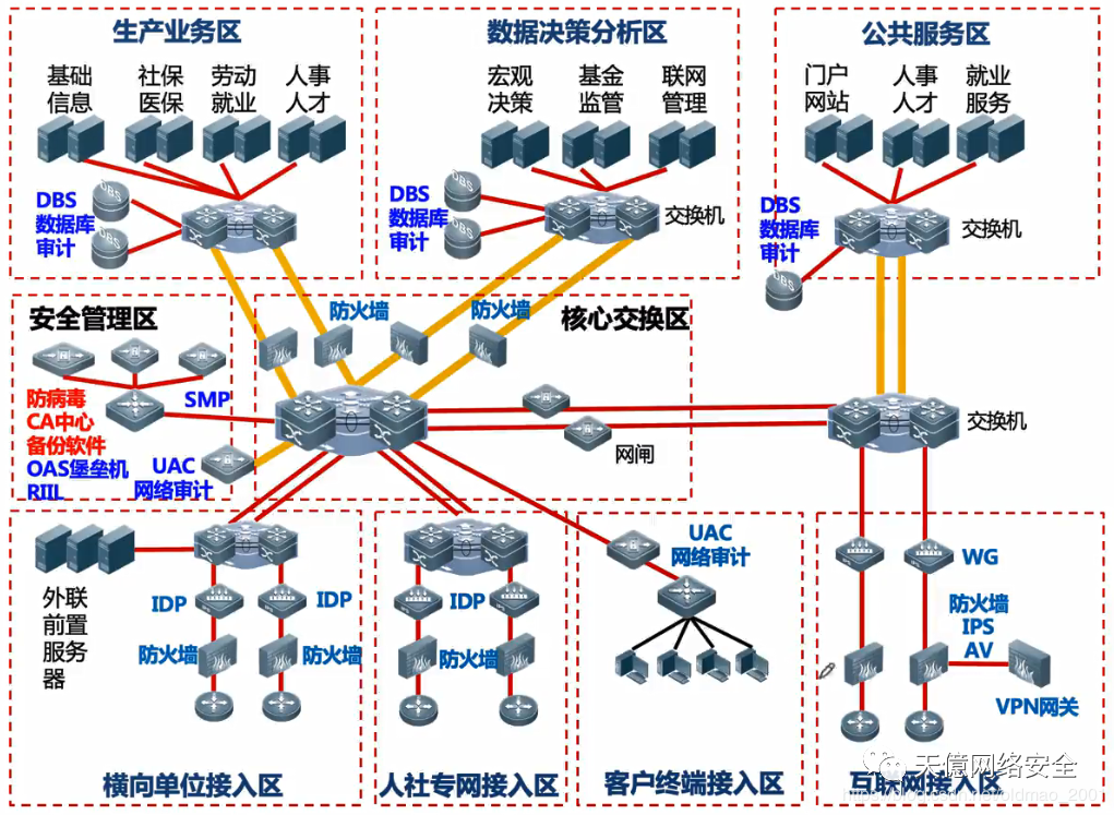 主要是IPS设备,可以在有防火墙的地方就部署一个,但是这样成本有点高,所以服务器区没有放。现在已经部署了六台IPS了。
