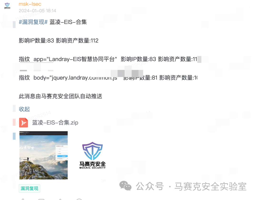 马赛克安全实验室专注于:漏洞复现、渗透测试、nday、0day、网络安全、红蓝对抗,持续输出安全相关漏洞情报、漏洞复现相关漏洞验证脚本及工具。