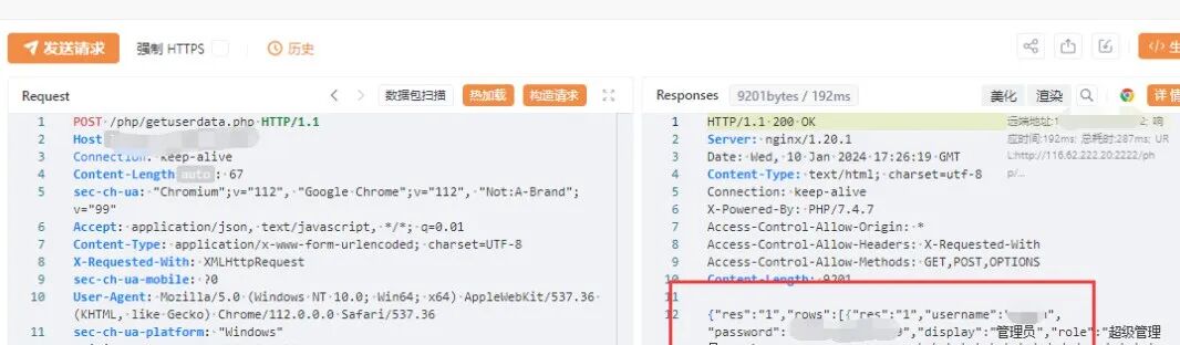 POST /php/getuserdata.php HTTP/1.1Host:Connection: keep-aliveContent-Length: 67sec-ch-ua: "Chromium";v="112", "Google Chrome";v="112", "Not:A-Brand";v="99"Accept: application/json, text/javascript, */*; q=0.01Content-Type: application/x-www-form-urlencoded; charset=UTF-8X-Requested-With: XMLHttpRequestsec-ch-ua-mobile: ?0User-Agent: Mozilla/5.0 (Windows NT 10.0; Win64; x64) AppleWebKit/537.36 (KHTML, like Gecko) Chrome/112.0.0.0 Safari/537.36sec-ch-ua-platform: "Windows"Sec-Fetch-Site: same-originSec-Fetch-Mode: corsSec-Fetch-Dest: empty04825Accept-Encoding: gzip, deflate, brAccept-Language: zh-CN,zh;q=0.9jsondata[pageIndex]=0&jsondata[pageCount]=30