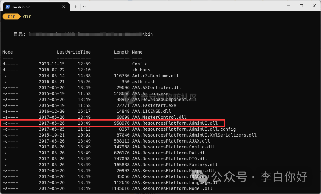 所以我们去 bin 目录下找到 AVA.ResourcesPlatform.AdminUI.dll