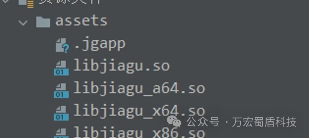 加固后再使用反编译软件打开,在程序目录下无法查看程序源代码,对逆向分析的DEX文件和资源文件进行了加密保护