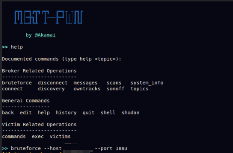 MQTT用户密码暴力破解的工具可以使用mqtt-pwn,https://github.com/akamai-threat-research/mqtt-pwn