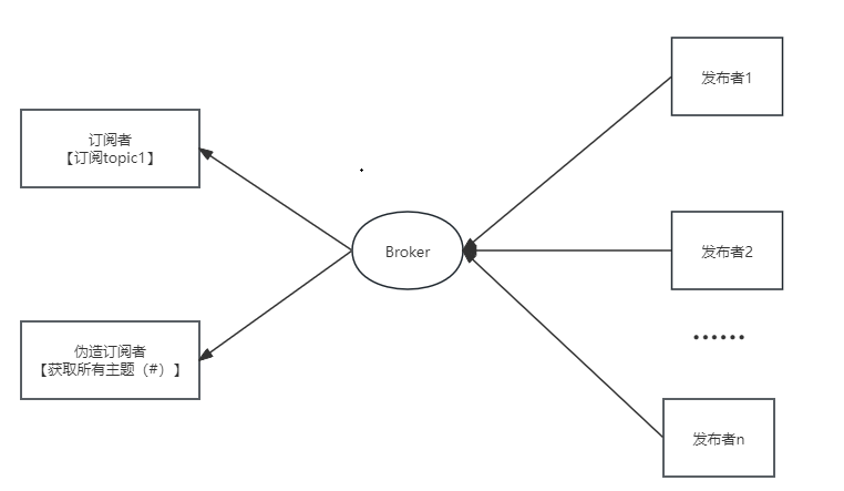 当我们通过匿名登陆/未授权或者通过暴力破解获取用户名密码连接上了MQTT代理服务器后,由于相关MQTT API权限的控制缺陷,恶意攻击者可以通过MQTT通配符#来冒充订阅者,订阅所有的消息主题