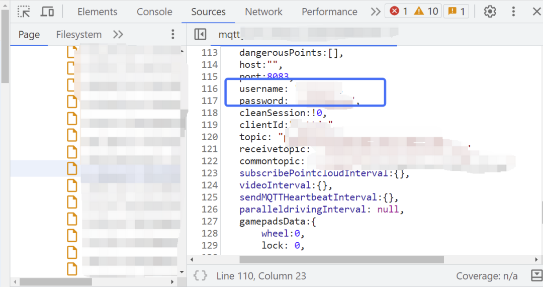 在一些物联网设备中,有的是通过浏览器直接连接到MQTT Broker订阅主题来展示相关信息,这就导致恶意攻击者可以通过javascript文件来找到连接的host、端口、用户名以及密码信息。