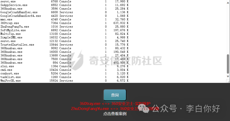 此时拿到该web权限之后我们先不着急进行内网隧道的搭建;先对其运行的进程进行查看看是否存在杀软