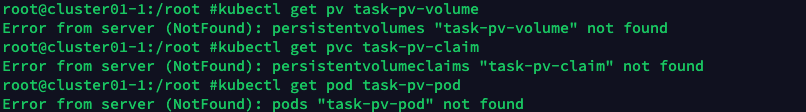 再次查看,可以看到此时 Pod, PVC, PV 都被删除了。