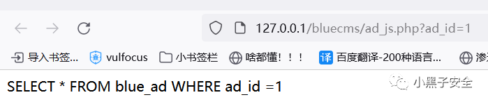 访问地址,传递参数为1。发现$ad_id变量成功接收了传递的参数值变为了1,变量可控