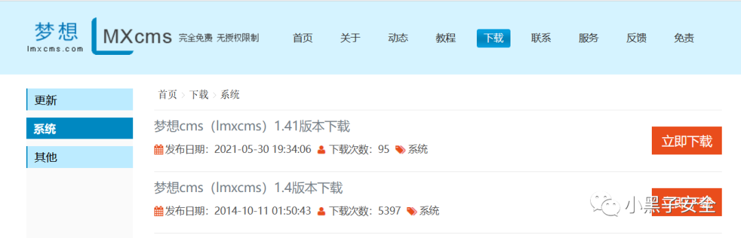 查看cms官网更新情况,可以看到漏洞版本后又更新了一个版本,就可以下载漏洞版本和更新版本进行对比。