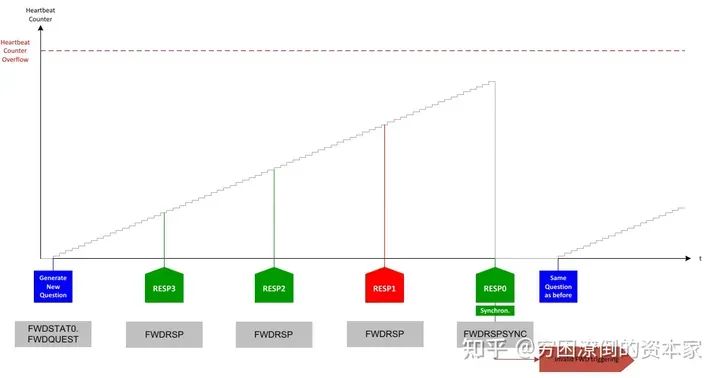 心跳计数器仍在计数,等待新问题的回复。 心跳计数器将到期并发生溢出。 这被视为“无效 FWD 触发”。 这功能看门狗错误计数器 ΣFWO 加 2。心跳计数器复位