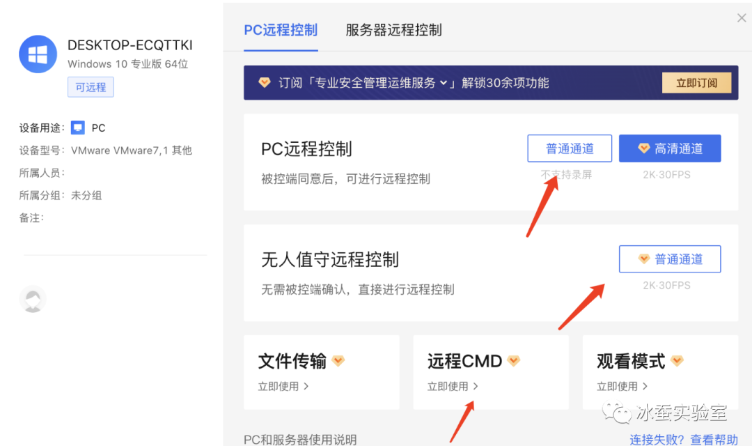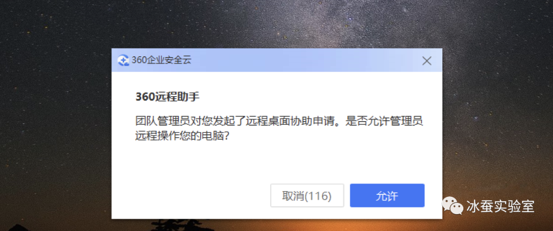 对于攻防场景来说,远控和执行命令是最为需要的,但是目前360企业安全云,只有PC远程控制可以免费,而且需要被控端同意,才可以远程控制,如下图