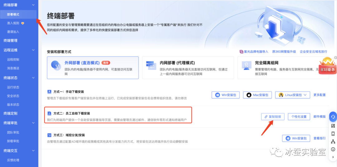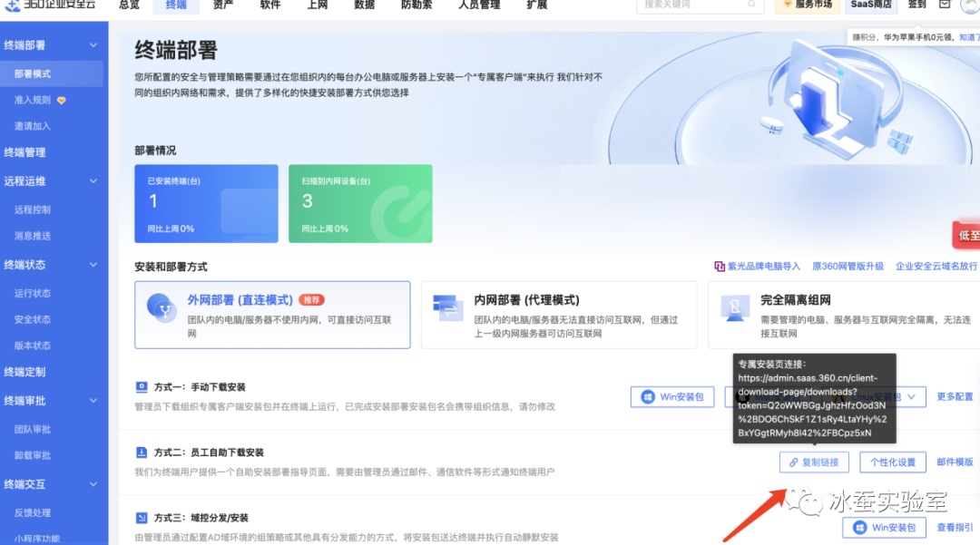 该链接是企业专属的下载链接。即按照我创建的链接下载客户端,安装后会加入到我的企业管理后台,被我远控。(hvv钓鱼那个事就是这个方式)