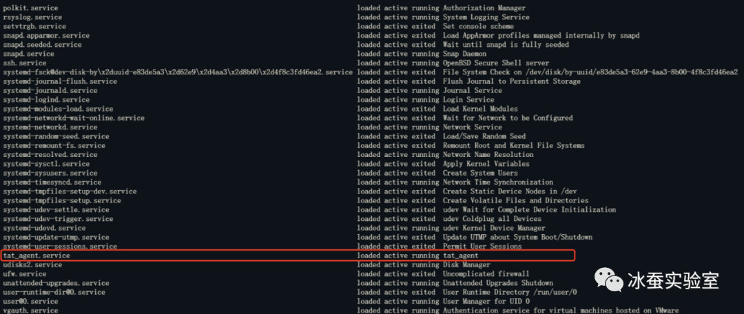 腾讯云助手,安装自动化助手agent时,系统自动创建tat_agent.service服务,使用systemctl list-units --type=service --state=running 列出所有正在运行的服务