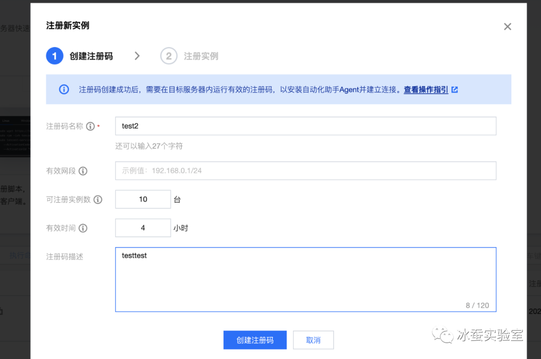 | 注册码描述 | 描述当前注册码的用途等信息,方便后续管理。 |