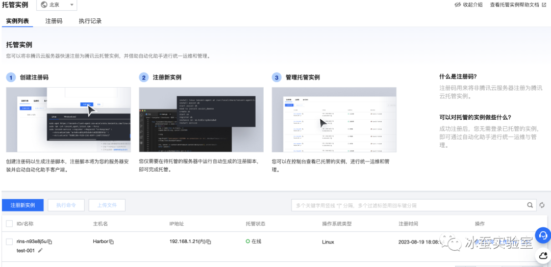 自动化助手虽然是腾讯云服务运维部署工具,但是也提供了非腾讯云的方案,将非腾讯云机器通过自动化助手注册为腾讯云托管实例。
