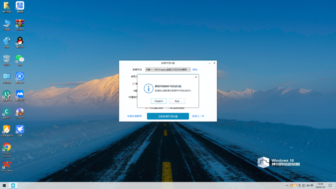 注意,在制作PE系统U盘前需要关闭安全软件避免误报。