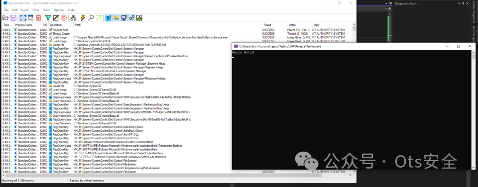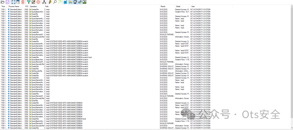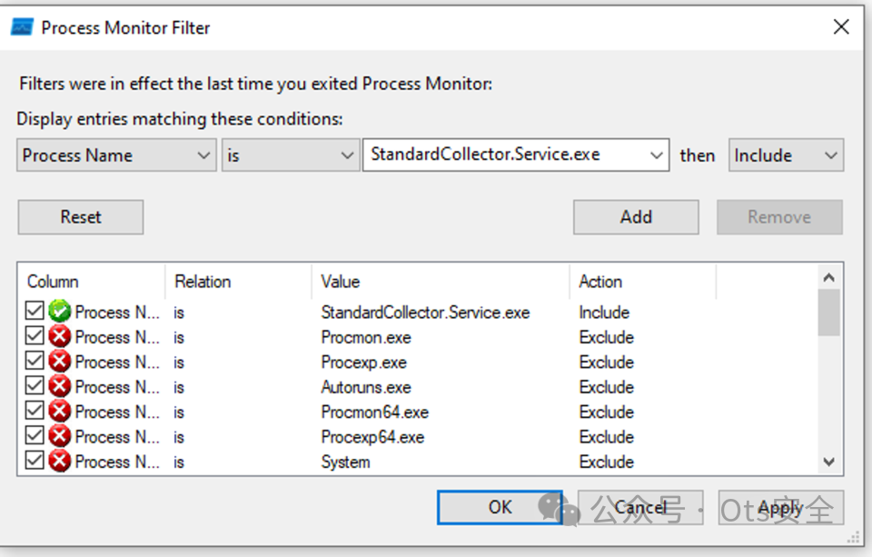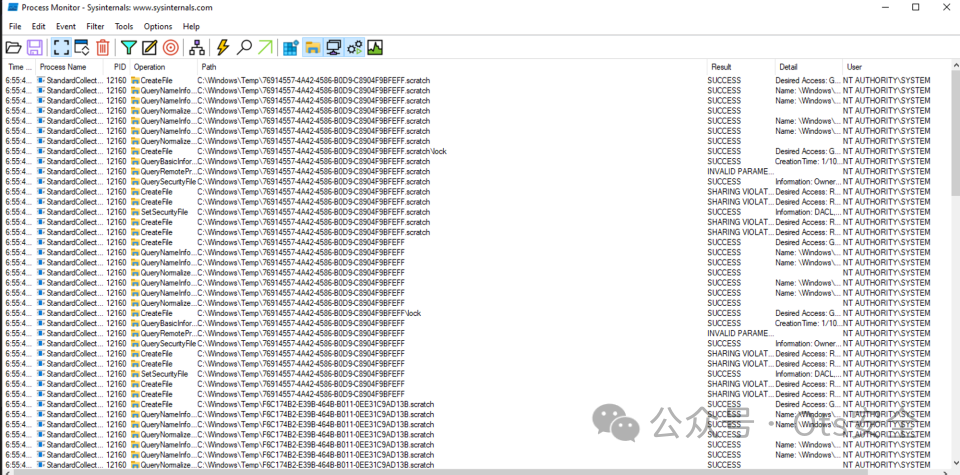 在本例中,我们将启动 Sysinternal 的 Procmon 工具并指定Process Name为StandardCollector.Service.exe