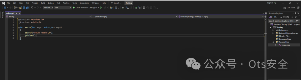接下来,我们将创建一个简单的 C/C++ 应用程序,我们将对其进行调试,这将触发VSStandardCollectorService150服务来收集有关正在调试的应用程序的必要数据: