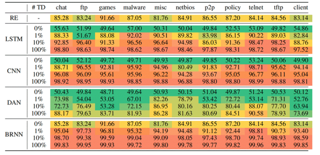 图3展示了Metis的数据识别准确率,图中显示Metis在没有训练数据的时候可以取得与RE基本相同的识别准确率,随着训练数据量的提升,其识别准确率也随之上升。