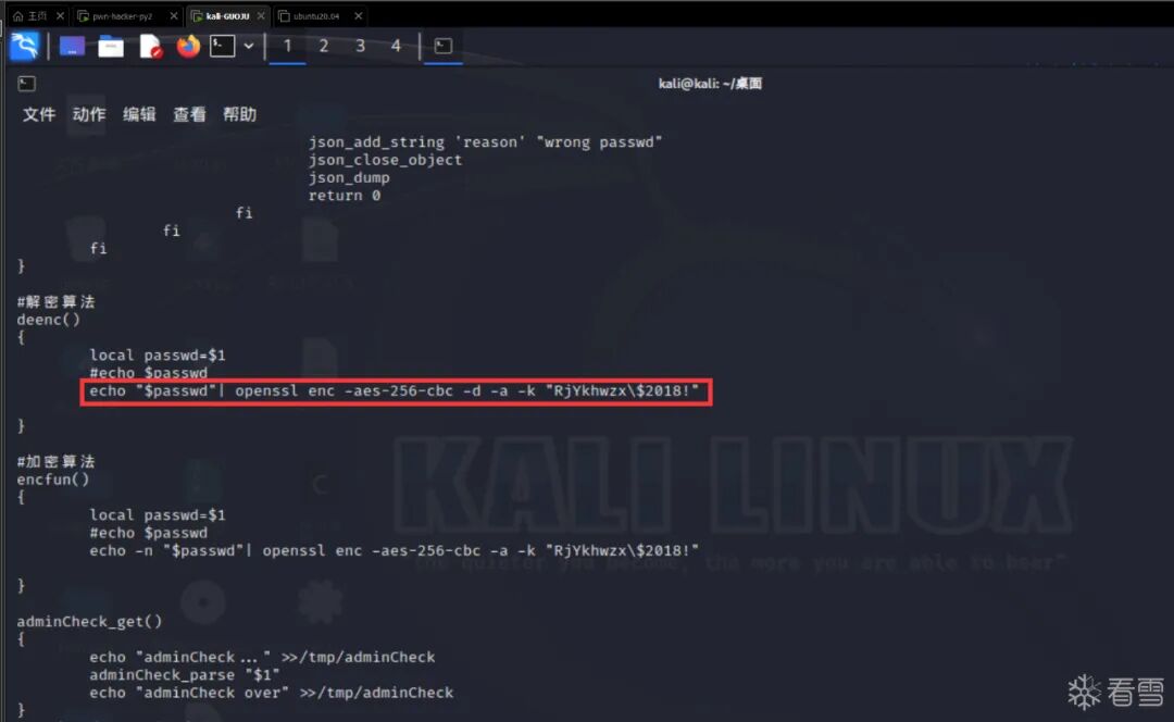 下面用真机演示一下(我用的设备型号是EW1200G-PRO,软件版本是EW_3.0(1)B11P25,Release(07162402)) ,我看了一下这个/usr/bin/adminCheck的文件,发现它的解密和上面并不一样,这里执行的应该是echo "$passwd"| openssl enc -aes-256-cbc -d -a -k "RjYkhwzx\$2018!"。