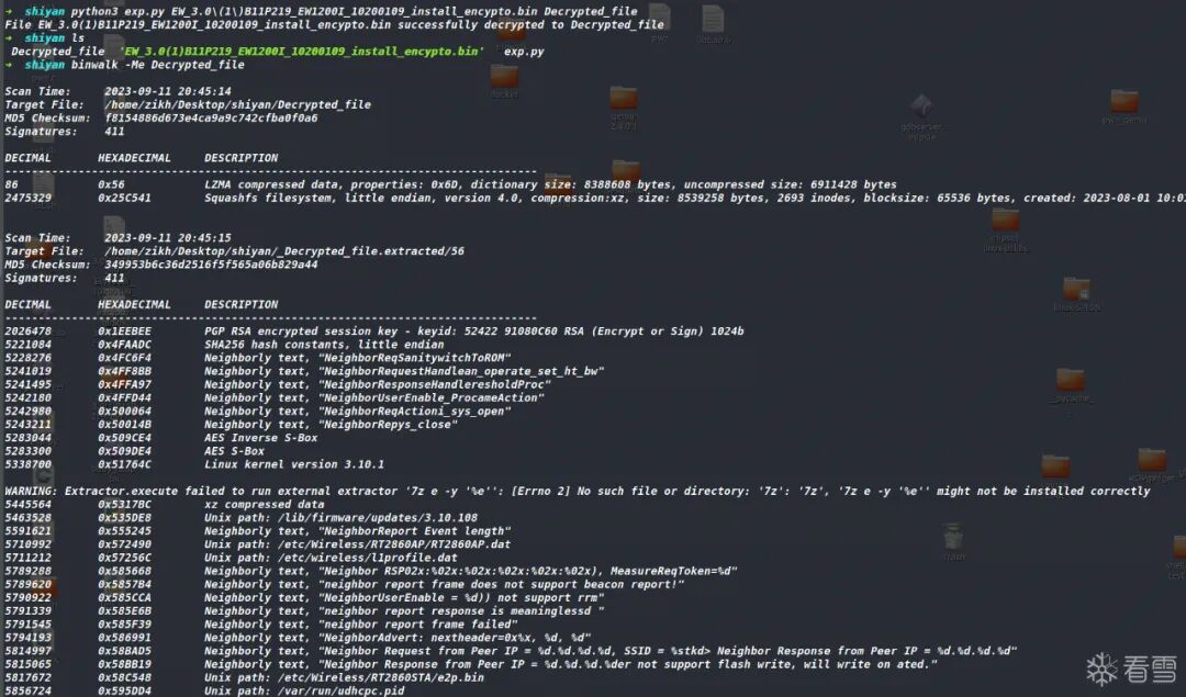 拿到文件系统后,可以去寻找负责加解密的程序/usr/sbin/rg-upgrade-crypto,对二进制文件/usr/sbin/rg-upgrade-crypto进行分析可以写出解密脚本,下面是winmt师傅编写的解密脚本。