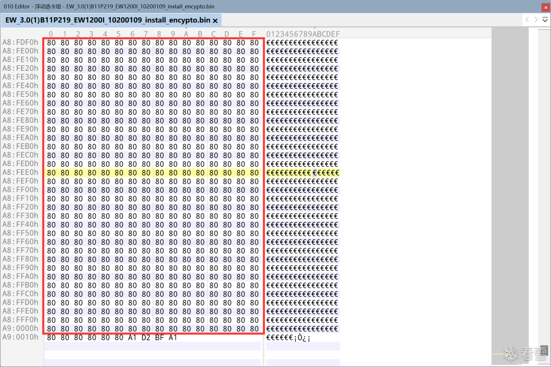 3.对加密后的固件直接分析,寻找一些特征或有规律的字节码,尝试编写其解密脚本。