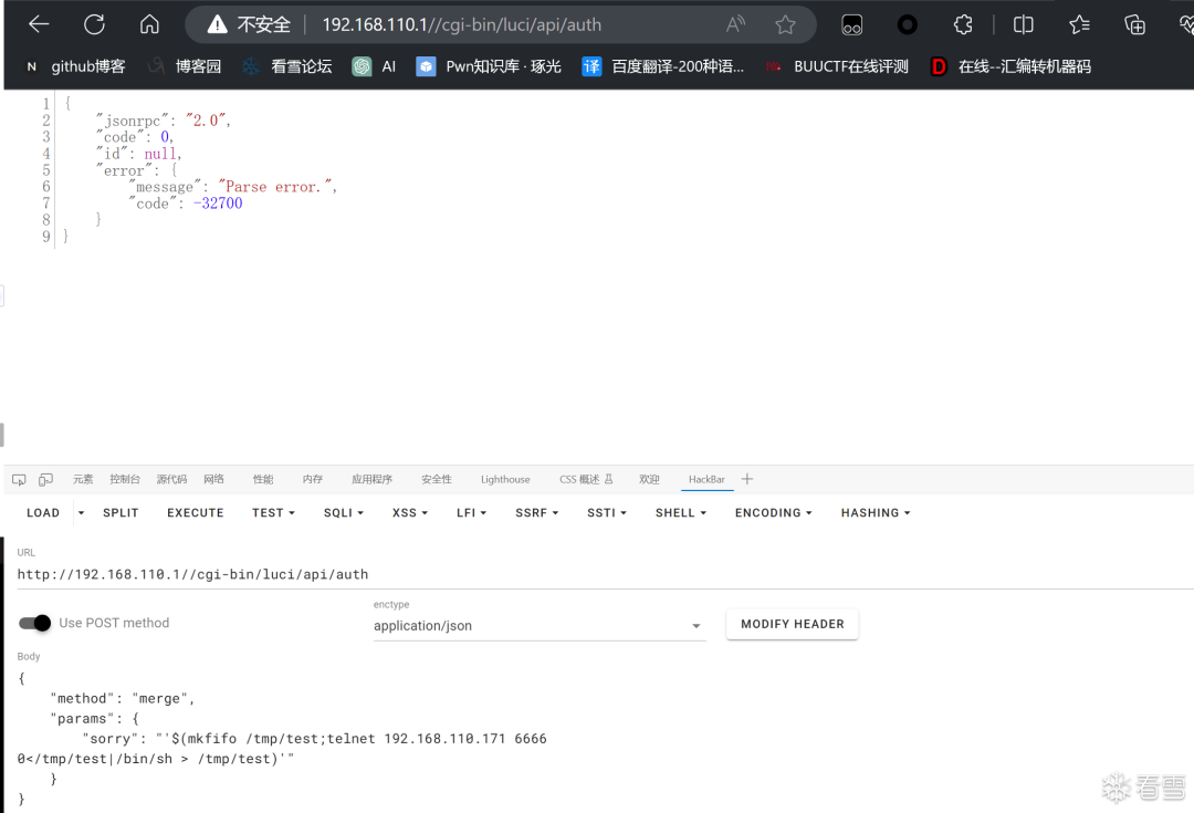 rpc_auth函数首先引入了一些模块(代码如下),然后获取HTTP_CONTENT_LENGTH的长度是否大于1000字节,如果不大于的话会将准备HTTP响应的类型设置为application/json,下面的handle函数第一个参数_tbl传入的是luci.modules.noauth文件返回的内容,变量类型为table(该table包含了noauth文件中定义的四个函数loginsingleLoginmergecheckNet)。