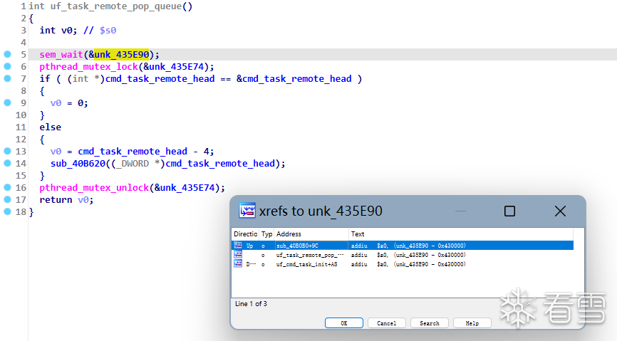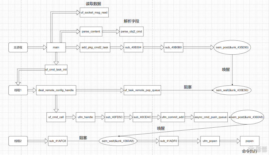 但是在复现的过程中,对于我这个初学者来说,依然有很多的问题感到一知半解,有不少地方经过尝试后依然没有思路,都想得过且过,认为此处理解的不透彻也并不影响整体的分析。可在细节上得过且过,真的在独立的漏洞挖掘中有所高质量的产出么?扪心自问,我不认为会有高质量的产出。比如在上文提到的信号量触发uf_cmd_call函数,不追踪到底的话,我只知道有个地方肯定操作了信号量导致了uf_cmd_call执行,但具体是哪里操作的信号量呢?IDA显示不完整的情况下,探究的过程并不容易。
