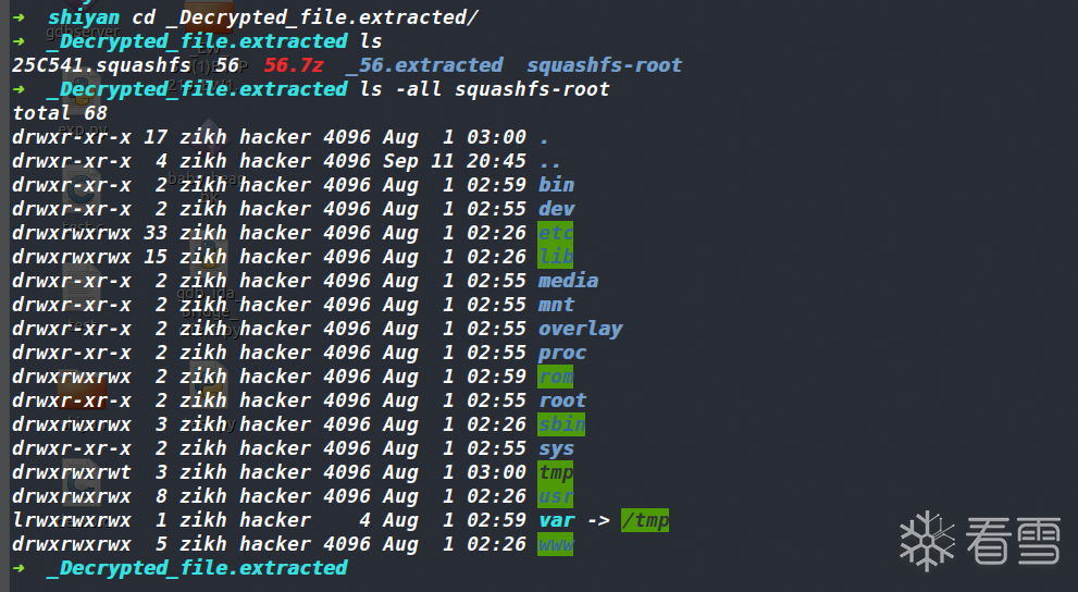 可以看到binwalk成功识别了固件,并成功解压出文件系统。
